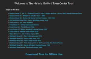 Guilford self-guided walking tours are available to download for offline use, allowing users to experience the tours without using smart phone data.