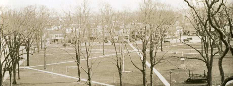 In the latter half of the 19th century, the Green continued its evolution from working space to recreational space. Skating, football, baseball, band concerts, and the town’s storied agricultural fair were among the many important pursuits that took place there. Moreover, the women of Guilford, through the United Workers for Public Improvement, embarked on a beautification project. They raised money for lights and sidewalks, replanted more trees, and—with much fanfare—raked the Green.